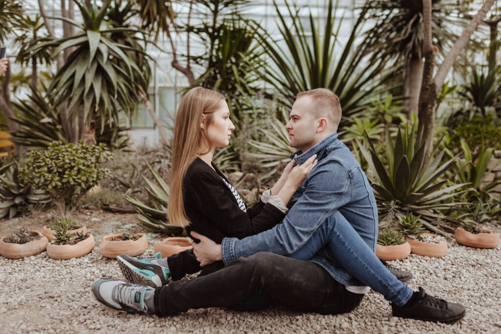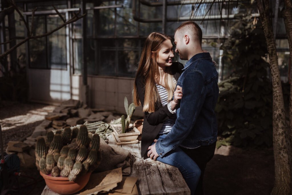 Sesja narzeczeńska w oranżerii